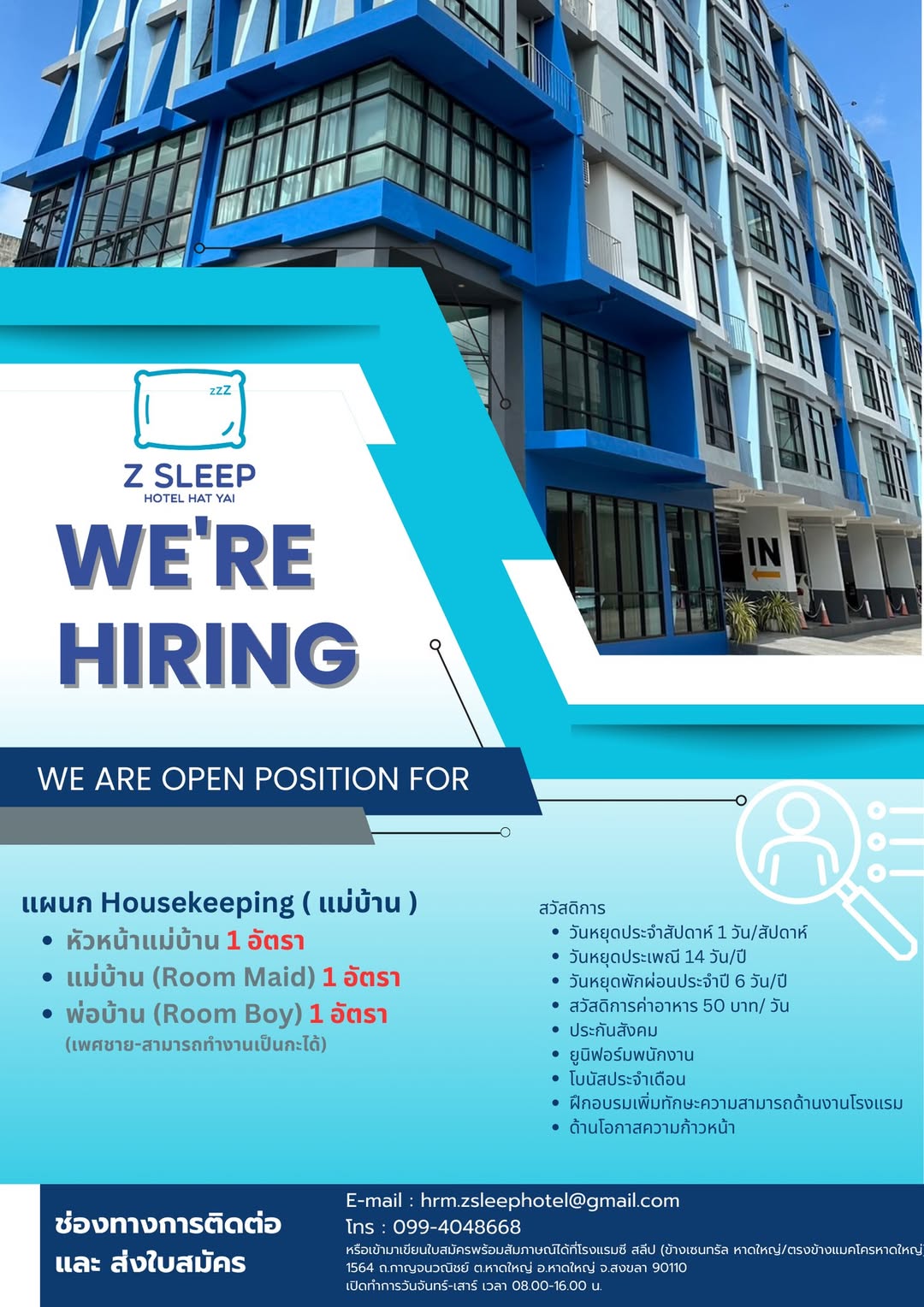 หรือเข้าไปเขียนใบสมัครได้ที่ Z Sleep Hotel ( ข้างเซนทรัลหาดใหญ่ )